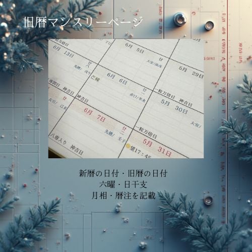 旧暦の世界観を大切にしながら、現代の生活に欠かせない「新暦マンスリー」も収録しています 。